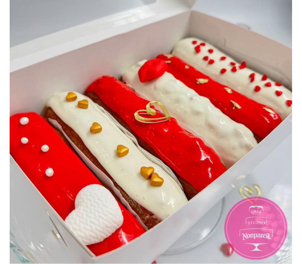 Пирожные Заказные Эклеры ко Дню Влюбленных (набор)